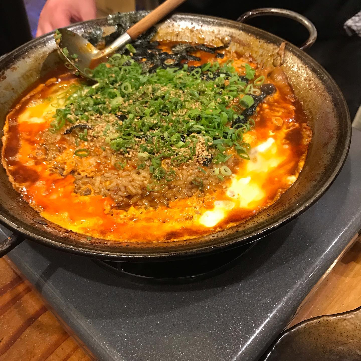 今日は先輩の会社のオイル交換をしたら誕生日祝いって事でテッチャン鍋の